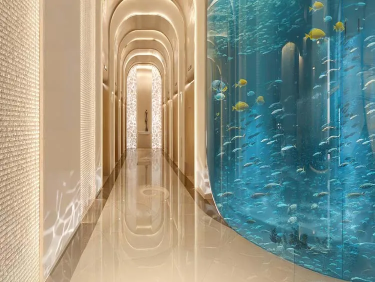 • طراحی منحصربه‌فرد با لابی بزرگ و آکواریوم ۱۵۰۰ فوت مربعی